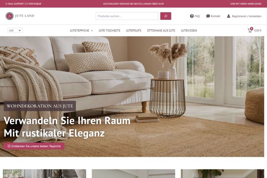 Mit Jute Land holen Sie sich den natürlichen Charme direkt ins Zuhause. Unsere sorgfältig Juteprodukte – von Bei Jute Land dreht sich alles um zeitlose Wohnaccessoires aus NaturfasernTeppichen über Kissen bis zu Poufs und Körben – verleihen jedem Raum eine besondere Note aus Wärme und Struktur.